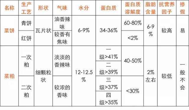 2、蛋白差異:菜餅蛋白含量為34-36%,菜粕蛋白含量一級菜粕≥41%,二級菜粕≥39%,三級菜粕≥37%,四級菜粕≥35%,飼料廠通常采購使用的是三級菜粕。