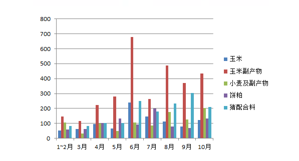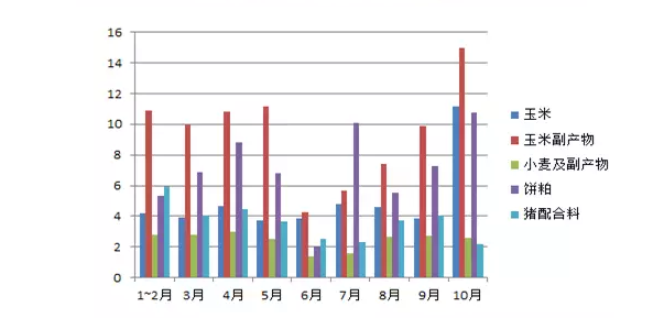 In October 2016, aflatoxin contamination has increasing trend; Corn by-products and batch (pigs) content of corn gibberellic ketene pollution is serious; Wheat and by-products, and corn by-products of vomiting toxins pollution is serious, the batch (pigs) pollution also slightly increasing trend.