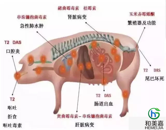 霉菌毒素能夠影響豬的生產性能、繁殖性能、干擾和抑制豬的免疫系統、導致豬癌變死亡,同時還會在豬體內殘留。