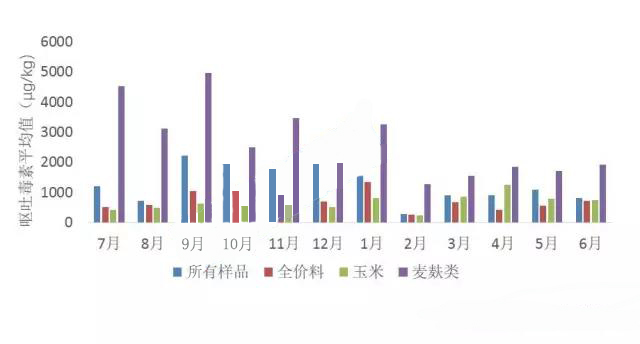 從歷史數據來看,6月份玉米赤霉烯酮污染稍有加重的趨勢。