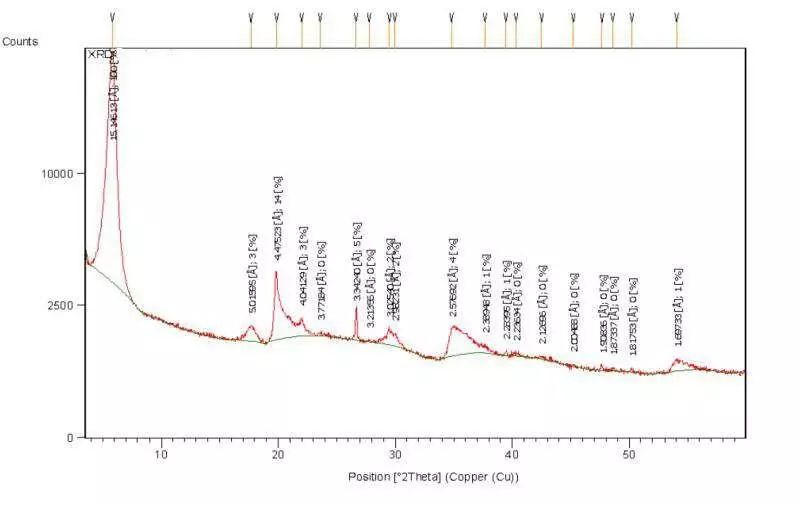 高純度蒙脫石XRD譜圖,結論:各種顏色的膨潤土都可以提純出高純蒙脫石。